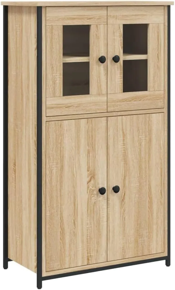 Questa credenza si integra con il vostro ambiente interno. Il legno multistrato offre una superficie liscia con robustezza e stabilità, mentre il telaio in metallo contribuisce alla struttura. Il mobile fornisce spazio per organizzare oggetti di uso quotidiano. Il piano d'appoggio è adatto per esporre decorazioni e piante in vaso. Le ante aiutano a proteggere gli oggetti dalla polvere e le maniglie ne facilitano l'apertura.
