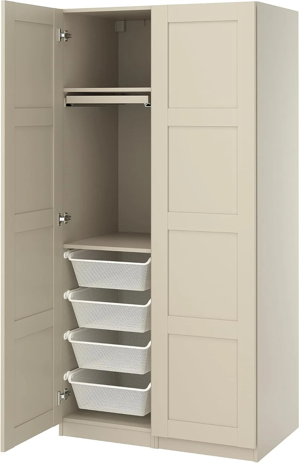 Questo prodotto offre funzionalità pratiche come un gancio per pantaloni estraibile per un facile accesso. I piedini sono regolabili per adattarsi a superfici irregolari. Le cerniere integrate assicurano una chiusura silenziosa delle porte. Un cesto in rete consente una buona circolazione dell'aria, ideale per conservare vestiti e accessori. Puoi personalizzare la combinazione PAX/KOMPLEMENT secondo le tue esigenze con lo strumento di pianificazione. I cassetti possono essere organizzati con scatole interne per un uso efficiente dello spazio.