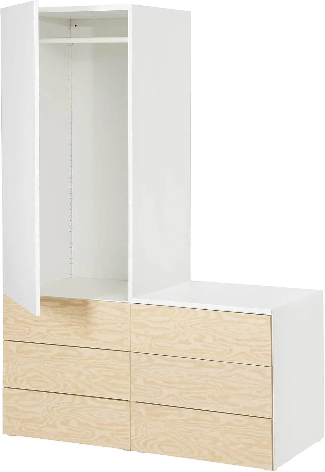 I piedini regolabili permettono di adattarsi alle irregolarità del pavimento. È possibile modificare la soluzione di archiviazione secondo le esigenze variabili, aggiungendo, rimuovendo o spostando le parti. Il telaio si monta facilmente incastrando le parti, senza bisogno di attrezzi. Le porte possono essere fissate per aprirsi a destra o a sinistra. Per l'organizzazione interna si possono utilizzare gli accessori della serie HJÄLPA e all'esterno le soluzioni della serie LÄTTHET. Con lo strumento di pianificazione domestica PLATSA, si può creare una configurazione che risponda alle necessità personali di spazio.
