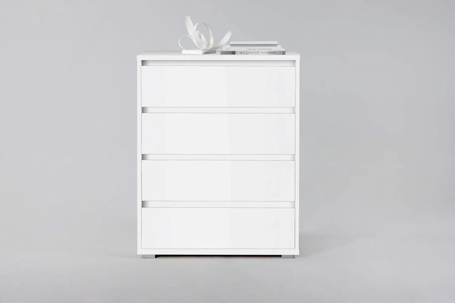 Cassettiera Avanti Trendstore adatta per soggiorno, camera da letto, ingresso o bagno. Offre spazio per riporre oggetti ed è compatibile con vari stili di arredamento. Realizzata in legno truciolare, include 4 cassetti. Consigliato pulire con panno umido.