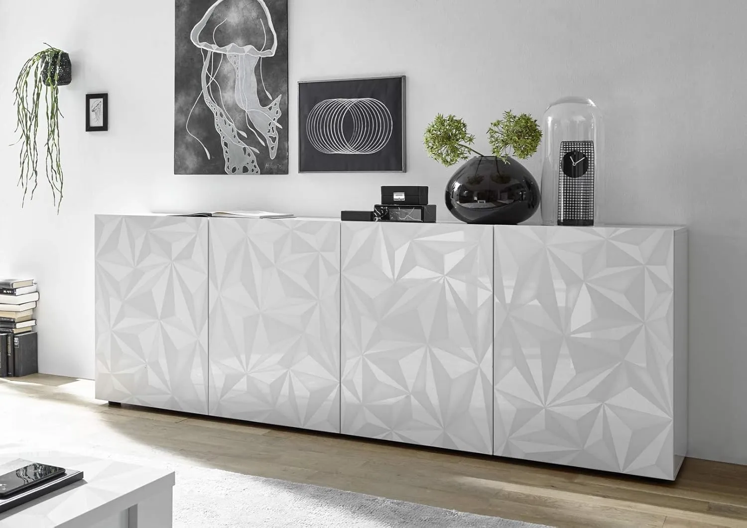 Credenza Moderna Prismo 09 con 4 Ante Bianche Lucide e Design Serigrafico