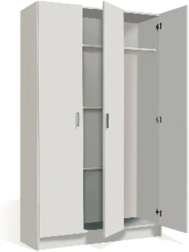 Armadio multiuso con portascope a 3 ante, dimensioni 180x108,8x37 cm, ideale per organizzare gli spazi della casa.