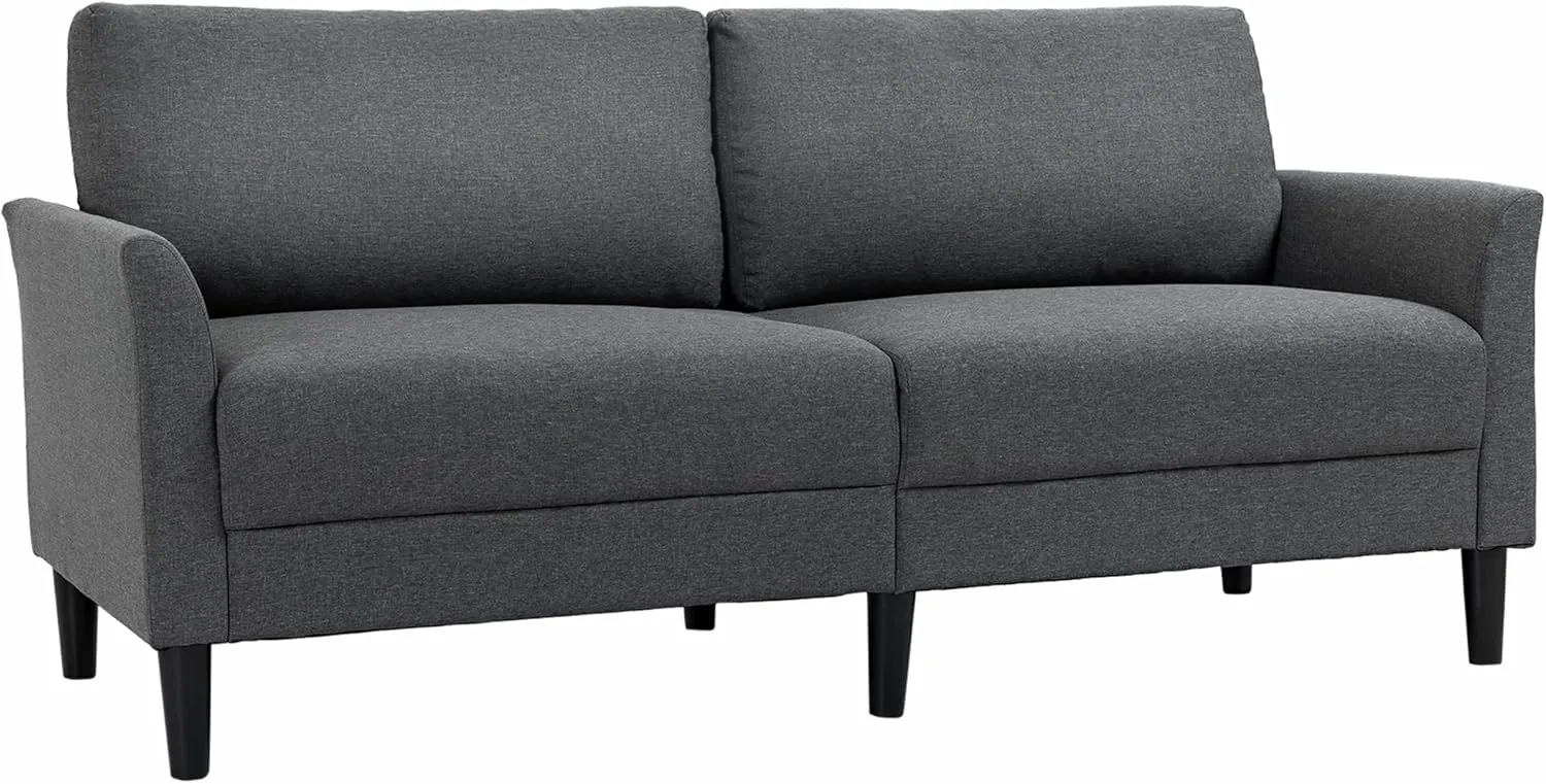 Divano a 3 posti dal design contemporaneo con linee sobrie e gambe in legno di hevea nero. Il rivestimento in tessuto effetto lino offre traspirabilità e un contatto piacevole. La seduta e lo schienale in schiuma ad alta densità garantiscono comfort. La struttura del divano, in compensato con gambe in legno dotate di piedini antiscivolo, assicura stabilità. Facile da montare seguendo il manuale di istruzioni. DIMENSIONI: Dimensioni complessive: 191L x 79P x 87A cm. Dimensioni della seduta: 168L x 50P cm. Altezza della seduta: 50 cm. Dimensioni cuscino dello schienale: 86L x 43P cm. Dimensioni braccioli: 76L x 10P cm.