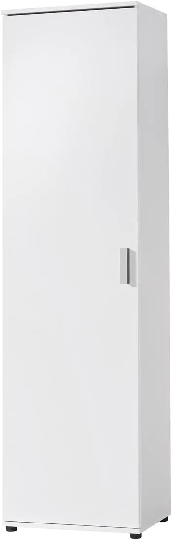Armadietto multiuso di Avanti Trendstore. Può essere utilizzato come scarpiera, armadio di stoccaggio o in vari ambienti come bagni e lavanderie. Composto da 1 anta a battente con 6 ripiani regolabili in altezza, offre spazio per organizzare utensili domestici. Realizzato in legno truciolare rivestito in melamina con maniglia in plastica, disponibile nei colori bianco opaco, quercia Sonoma e grigio cemento. Misure LxAxP 50x184x35 cm.