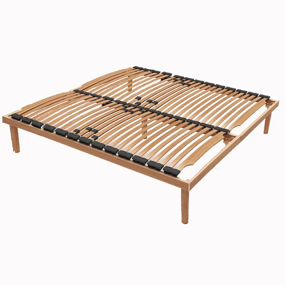 La rete fissa in legno è un prodotto ortopedico con regolatori di portanza per scegliere la rigidità della rete nella parte sollecitata dal peso e adattarne la portanza. Completamente in legno di faggio multistrato, trattato con sostanze naturali. Le doghe ultra flessibili sono curvate a vapore, dotata di cinque piedi, di cui uno centrale.