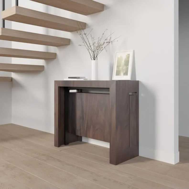 Consolle allungabile Mercurio progettata per trasformarsi rapidamente da piccolo tavolo d'arredo a tavolo da cucina.